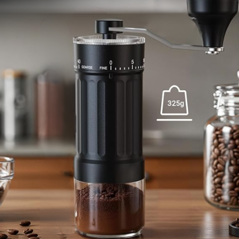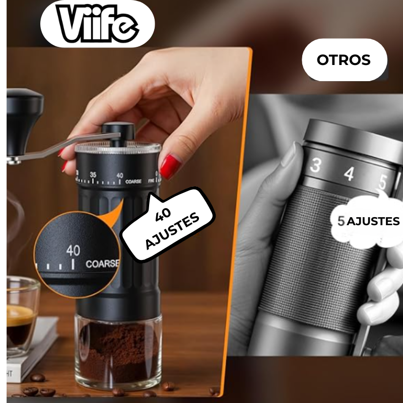 Disfruta del ritual de moler a mano y mantén la frescura de tus granos sin depender de enchufes. -